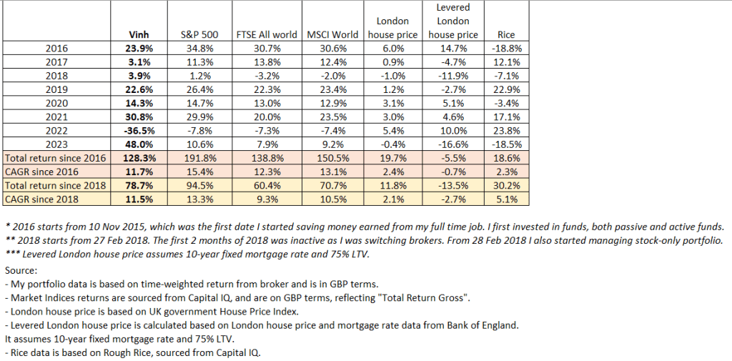 The major tech holdings in the portfolio – Meta, Amazon and Google have had a nice run up YTD. That said, I think they are trading at around 10-30% discount to their current intrinsic value. If taking into account potential growth in intrinsic value due to future growth the discounts will get wider. Therefore I don’t expect to significantly sell down any of them to the extent there are other opportunities (e.g. I sold down Google a fair bit to buy up Hotel Chocolat).
